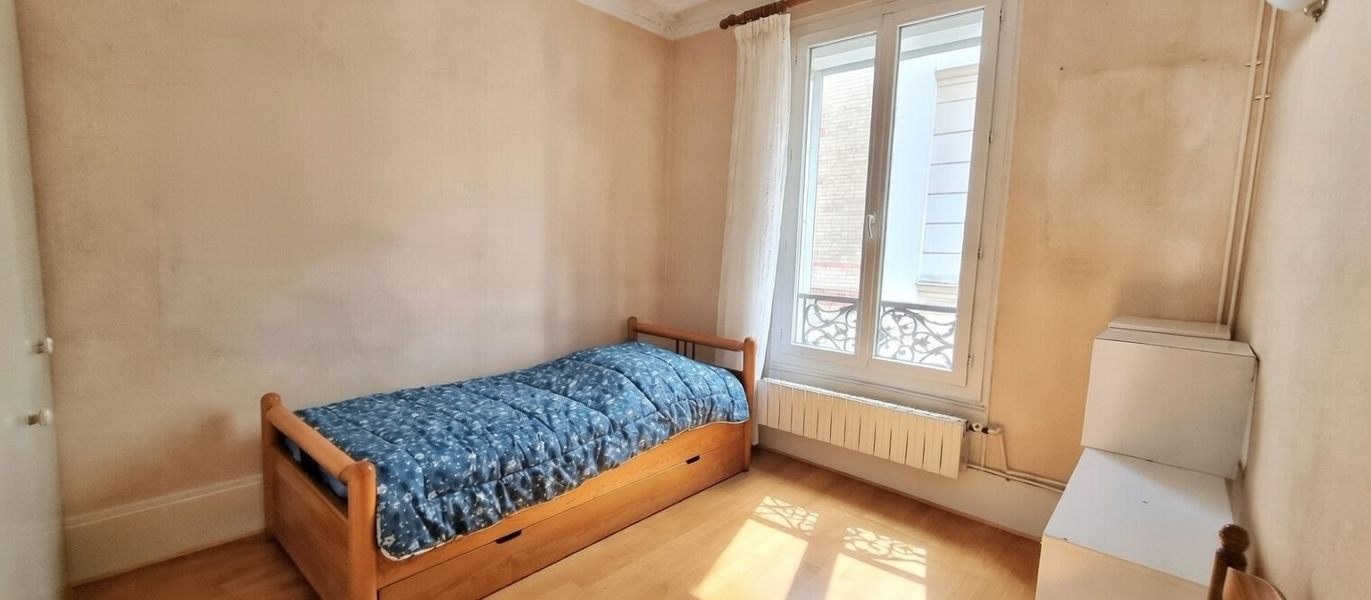 Métro Anatole France / proche Mairie. 3 Pièces 53.4 m² situé au 1er étage calme et lumineux. Entrée, séjour 13.2 m², 2 chambres 13.1 m² et 10.2 m² (double séjour + 1 chambre possible), cusine avec coin repas, salle de bains, wc séparés. Cave au sous-sol. Appartement bien agencé en étoile, double exposition sur rue et cour avec jolie vue. Immeuble bien entretenu. Faibles charges (115 € / mois), DPE classe D. Emplacement recherché, proche de toutes les commodités.